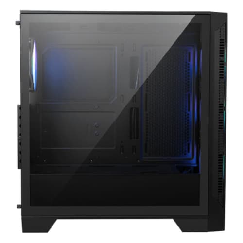 - Tempered Glass Side Panel displays ARGB lighting effects.